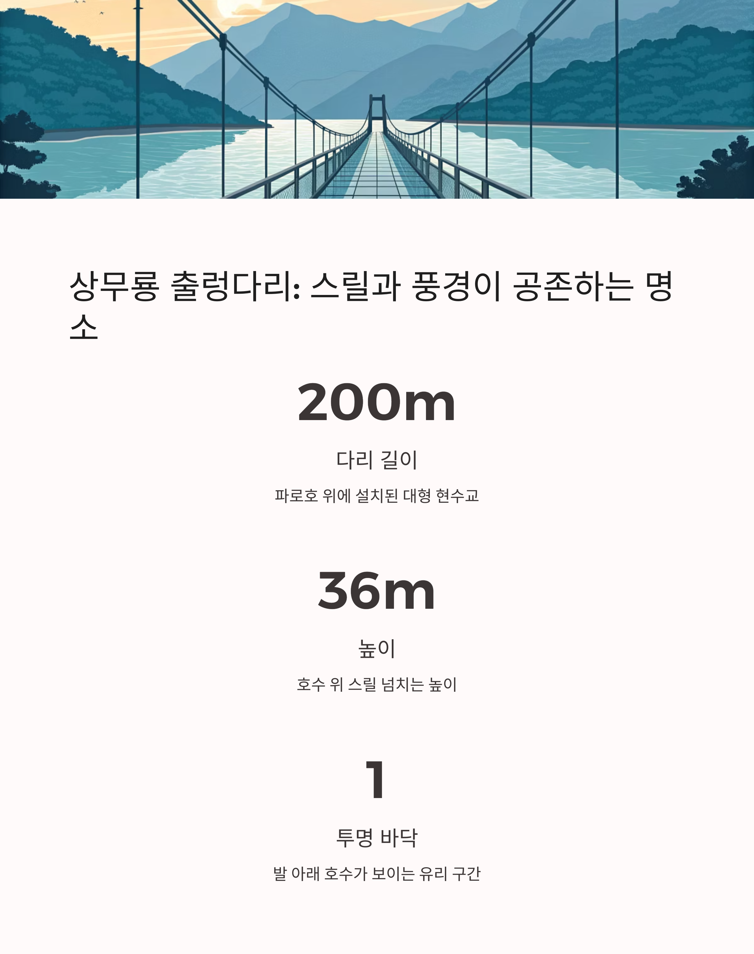 상무룡 출렁다리: 발 아래 호수가 펼쳐지는 스릴과 뷰 포인트