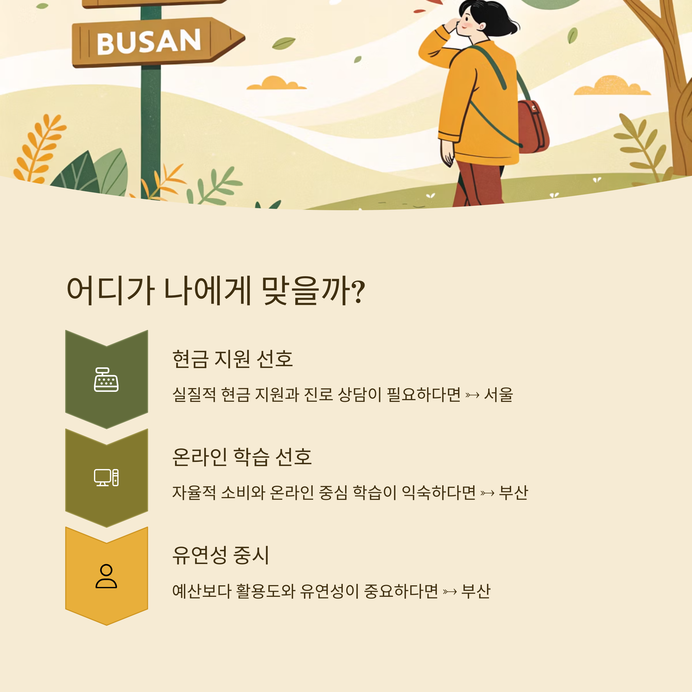 - 자율적인 소비와 온라인 중심 학습이 익숙하다면 → 부산