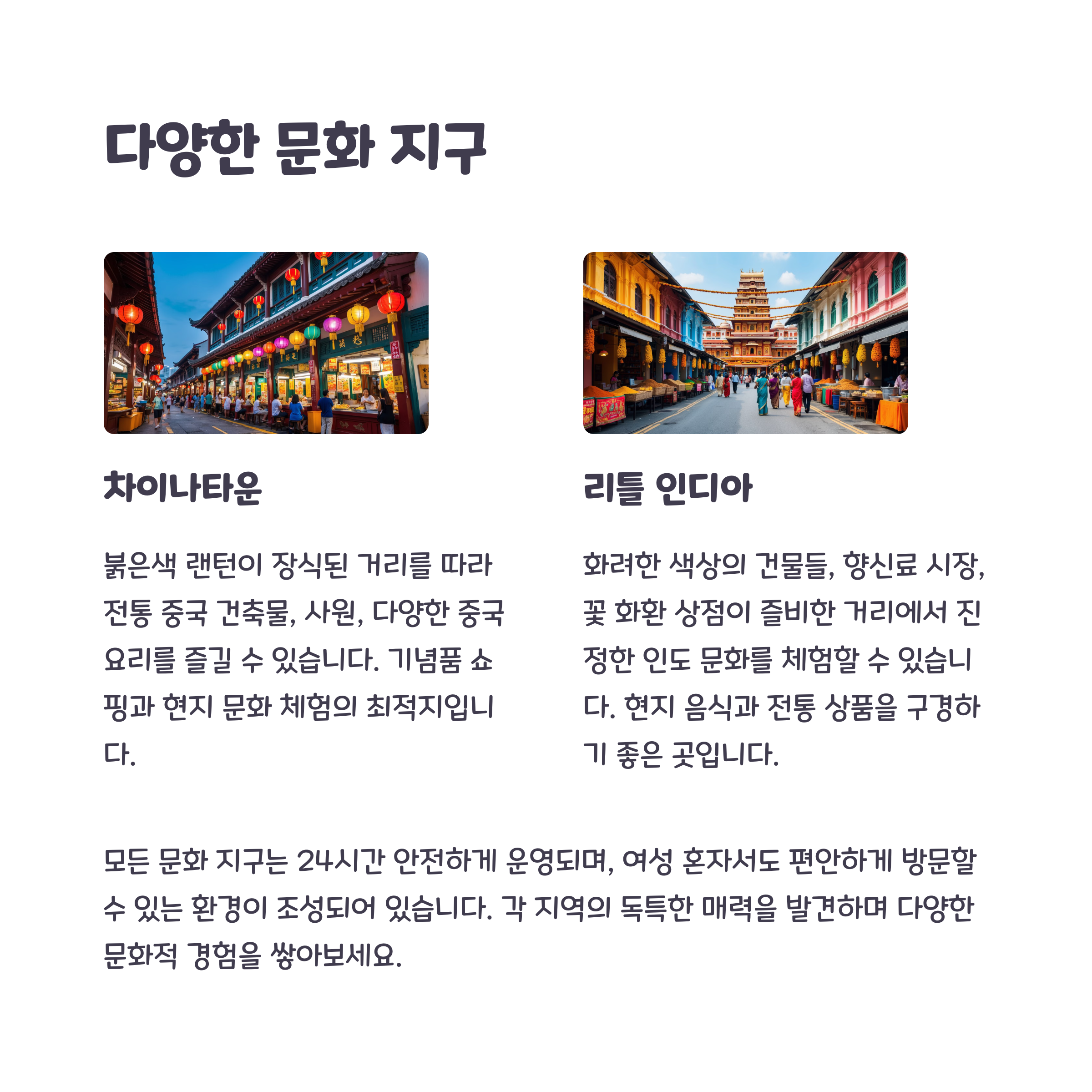 이제 싱가포르의 매력적인 장소들을 하나씩 살펴보겠습니다.