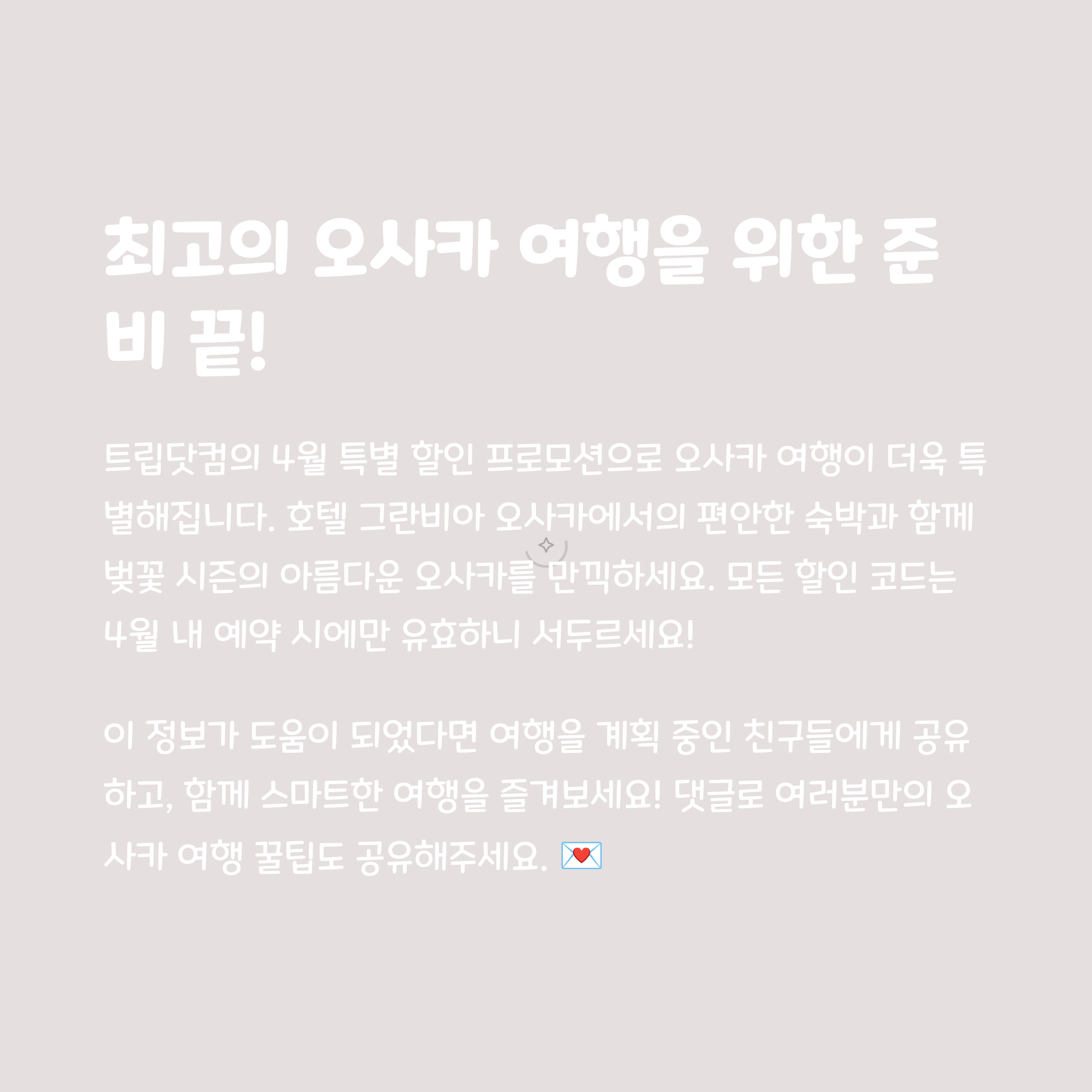 트립닷컴 할인코드와 프로모션은 4월 오사카 여행 예약 비용을 낮추는 훌륭한 도구입니다.